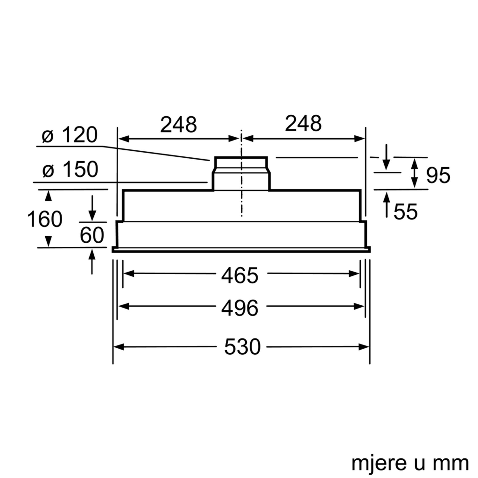 BOSCH Potpuno ugradbena napa DHL555BL Serie 4|; 60 cm; C; 618 m3/h; Buka: 38/56dB; 4 podešavanja snage;2 Motora ventilatora; LED; Potrebna veličina niše za ugradnju (VXŠXD) :255mm x 500.0mm x 350mm; DE
