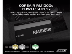 Corsair PSU 1000W RM1000e, Gold, Fully Modular, 12V-2×6, 6xSATA, 3xPCIe, ATX 3.1, PCIe 5.1, 50-series ready