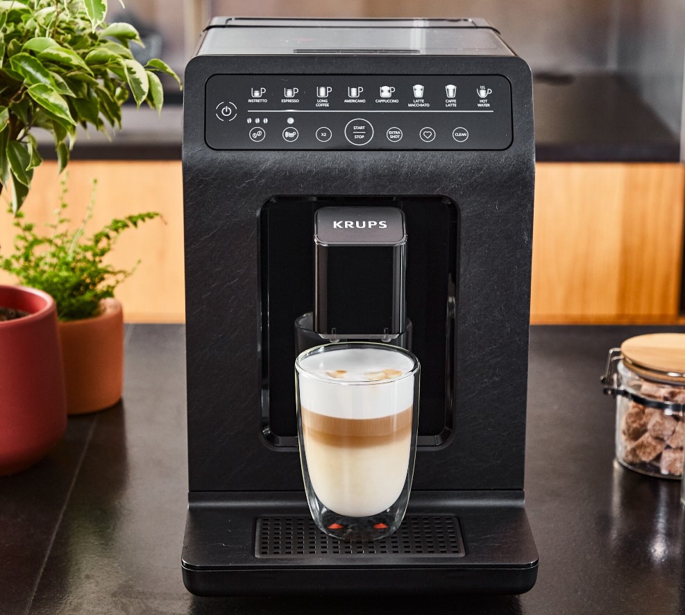 Krups EA897B10 Evidence Eco Design.Potpuno automatski aparat za kafu. 15 postavki za pripremu napitaka.OLED touch-screen kontrolni display.Automatski ciklus ispiranja parne mlaznice.Ekstra veliki spremnik vode i spremnik za zrna kafe.