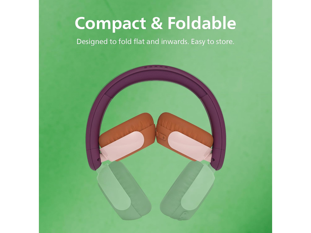 Philips TAK4200 djecije slušalice; Bežične sluš. koje se stavljaju na uši; Glasnoća ograničena na 85 dB; LED svjetla. Dijeljenje zvuka; Izdržljive i preklopive; Aplikacija za slušalice tvrtke Philips s roditeljskim nadzorom; do 45 sati reprodukcije;