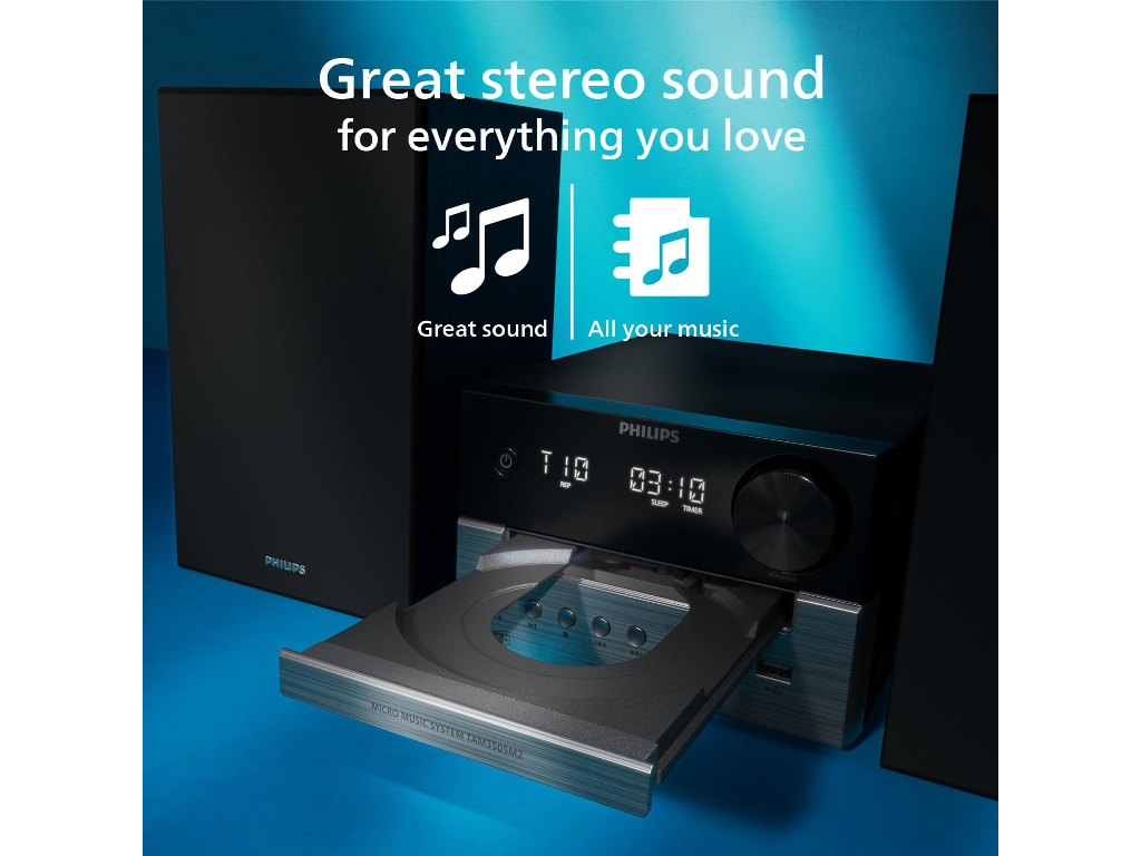 Philips TAM3505M2 mini linija. Bass reflex zvučnici. Snaga 20W. Mogućnost povezivanaj DAM+/FM, CD, USB, audioizlaz. Bluetooth 5.4