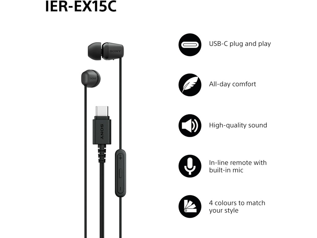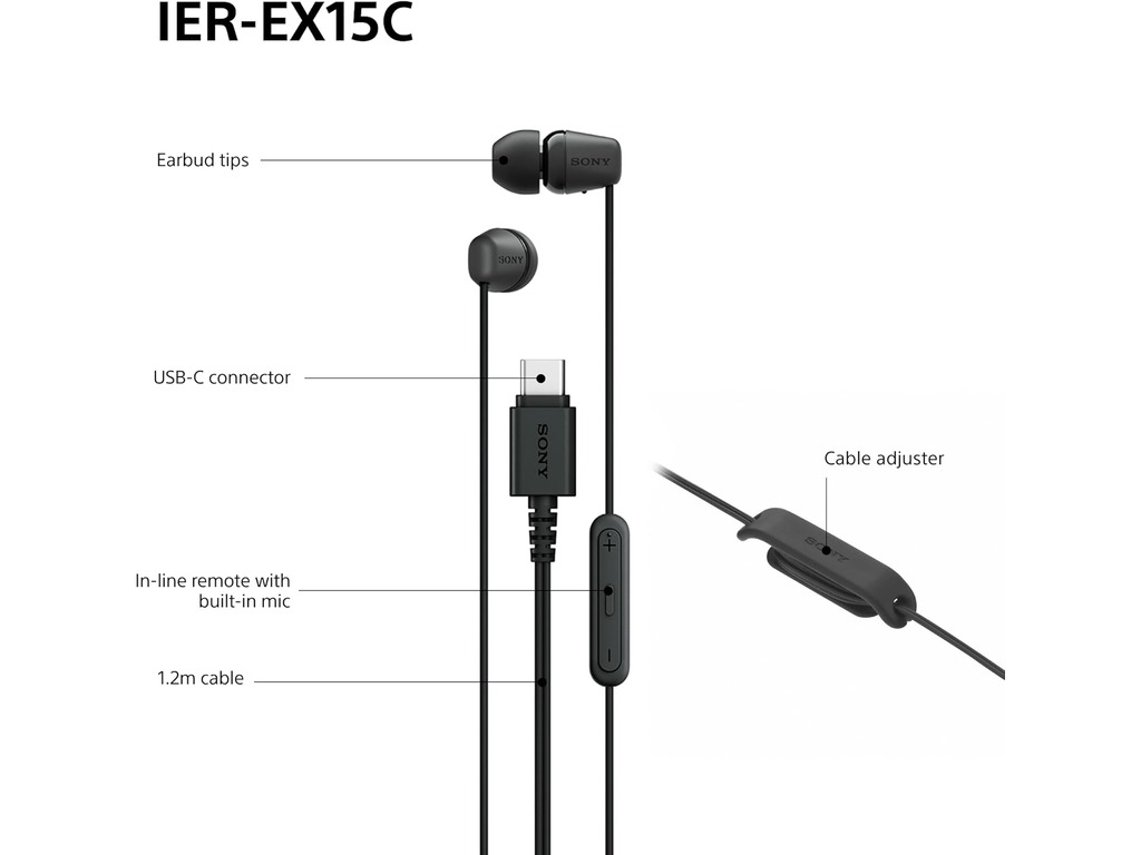 Sony In ear žične slušalice, USB-C, Androis/iOS kompatibilne, 5mm drajveri za snažan bas, mikrofon višesmjerni, daljinska kontrola, glasovni asistent, kabl 1.2m, XS/M/XL silikonski umetci, boja crna