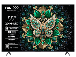 TCL 55”C6K 4K QD-Mini LED TV; 144Hz native display; Precise Dimming Series; Google TV; Game Master; Dolby Atmos; Onkyo 2.1; HDR Premium; HDR10+ HDR10 HLG; Netflix Youtube Amazon Prime Apple TV; Chromecast & T-cast; HDMI: 4x 2.1; USB: 1x 3.0;